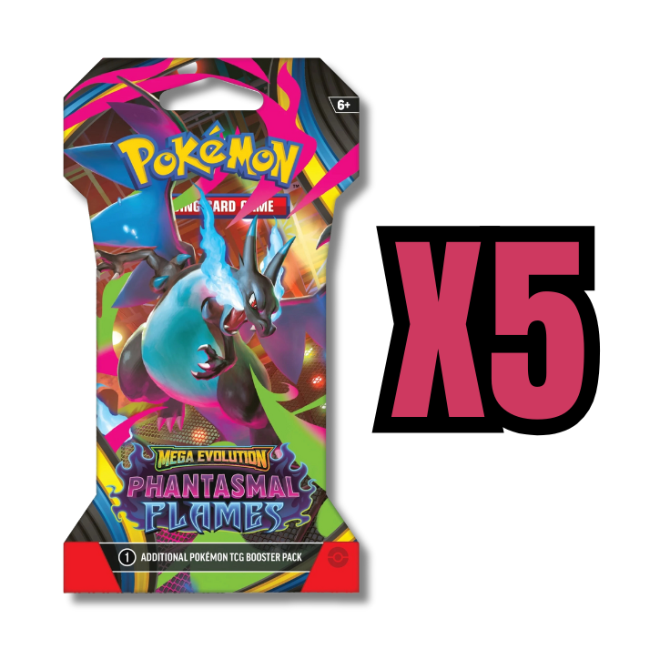 Step into the heat of battle with 5 sleeved Phantasmal Flames booster packs, delivering fiery Pokémon, dramatic artwork, and high-impact pulls. Sleeved packs offer added protection and display appeal, making them a favorite for both collectors and pack-rippers.